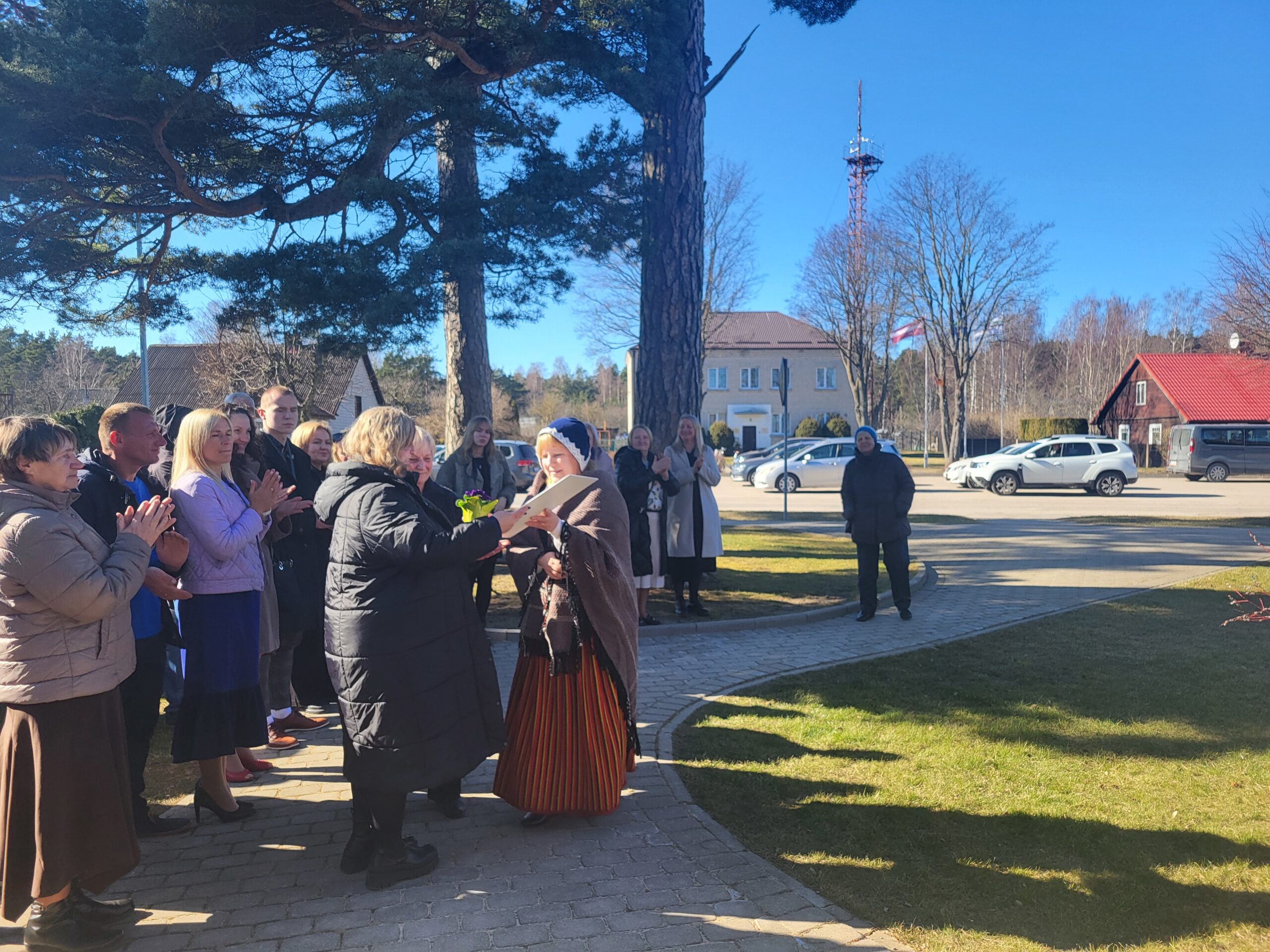 22.mar­tā Lībie­šu saie­ta namā sati­kās Zvirgzdi­ņu dzim­ta, lai sumi­nā­tu Zel­tu Grīnpu­ka­li (dzim. Zvirgzdi­ņa) viņas 100 gadu jubilejā.