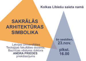 Šo ses­tdien, 23.novembrī, plkst. 16.00 Kol­kas Lībie­šu saie­ta namā uzstā­sies Lat­vi­jas Uni­ver­si­tā­tes Teo­lo­ģi­jas fakul­tā­tes docents, Baz­nī­cas vēs­tu­res dok­tors ANDRIS PRIEDE ar priekš­la­sī­ju­mu SAKRĀLĀS ARHITEKTŪRAS SIMBOLIKA.