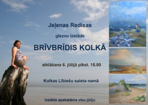 Jeļe­nas Redi­sas glez­nu izstā­de «Brīvbrī­dis Kolkā» jūli­jā apska­tā­ma Kol­kas Lībie­šu saie­ta namā. Izstā­des atklā­ša­na 6. jūli­jā plkst. 15.00