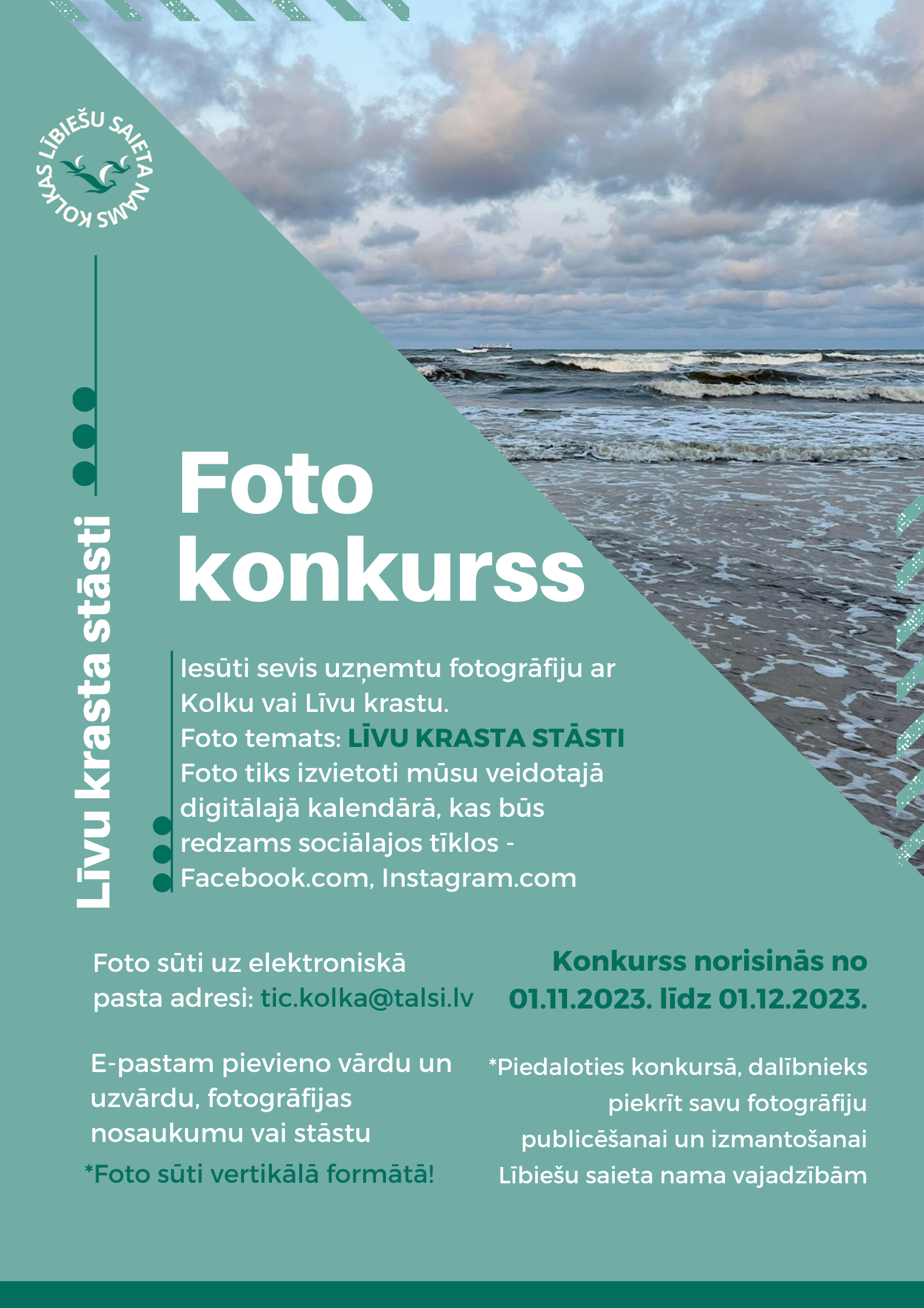 Fotog­rā­fi­jas tiks izman­to­tas Kol­kas Lībie­šu saie­ta nama digi­tā­la­jā kalen­dā­rā sociā­la­jos tīk­los – www​.face​book​.com., www​.instag​ram​.com.