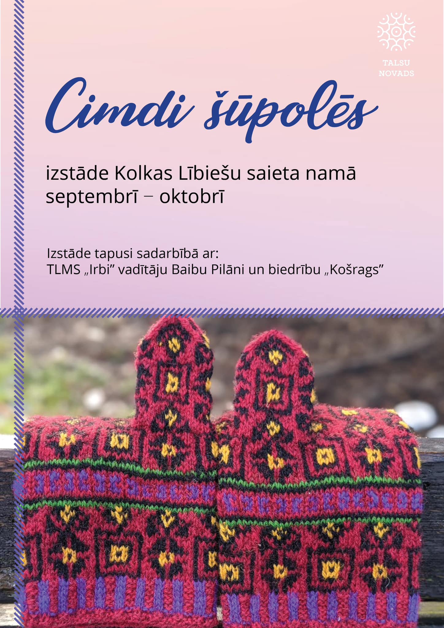 Aici­nām vis­us cie­mos pie mums, Kol­kas Lībie­šu saie­ta namā, lai apska­tī­tu vai­rāk kā 300 Lat­vi­jas, Zie­meļ­kur­ze­mes un Lībie­šu kras­ta cim­dus, un, iespē­jams, dalī­tos ar saviem stās­tiem par cimdiem!