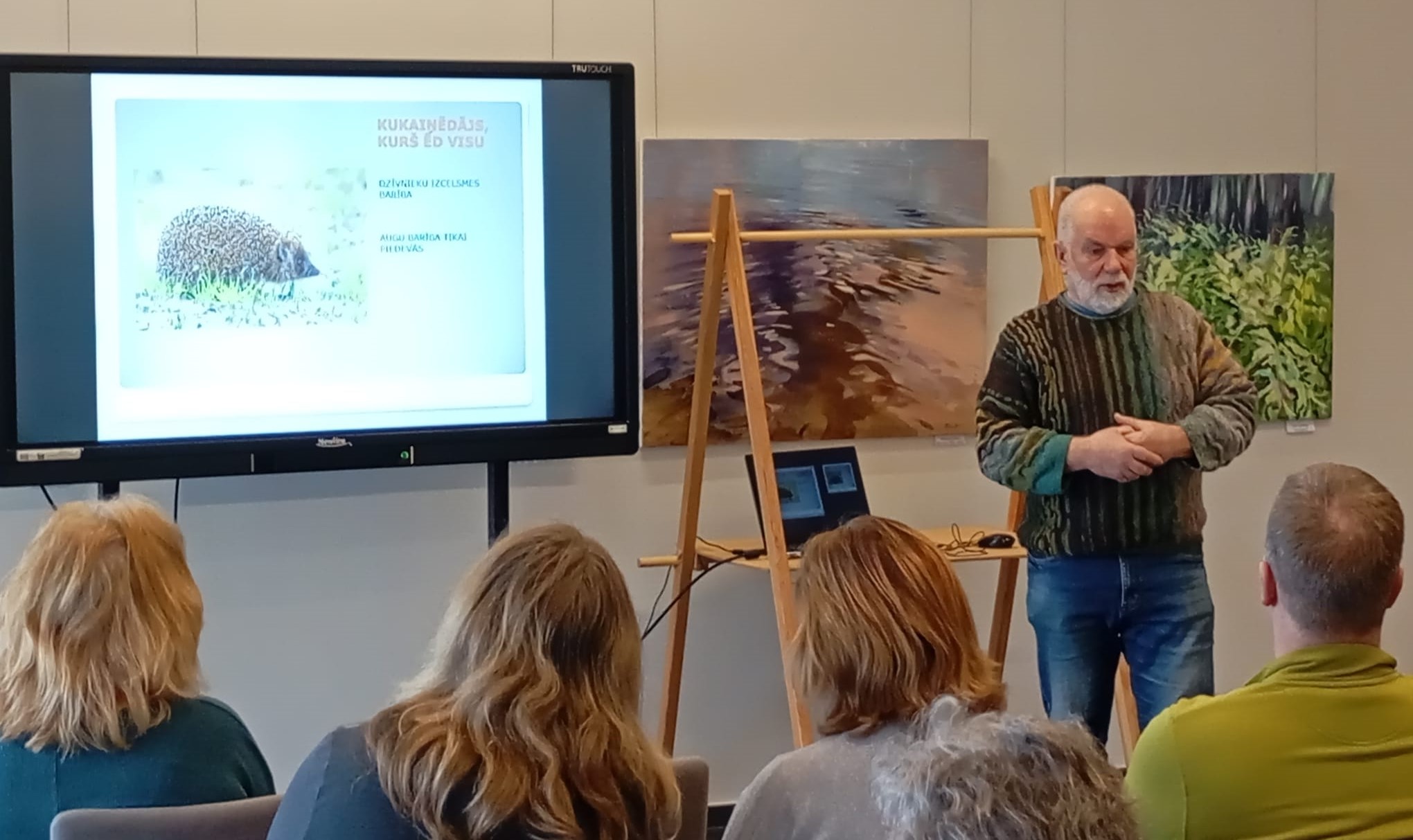 Tā 1. martā dabas pētnieks Vilnis Skuja mūs ieveda ežu pasaulē. Tagad mēs zinām né tikai to, ka ezim ir 5000 – 7000 adatu, kas patiesībā ir pārveidojušies mati, ka mazie ezēni piedzimst, kaili, bez attīstītām adatām un daudz ko citu, bet arī to, ka Kolkā né tikai saimnieces ir radošas, bet arī bērni ir radoši. Jo, lai no sagatavēm, kas paredzētas eža izveidošanai, «Ežu darbnīcā» izveidotu zirnekli, bez radošuma neiztikt.